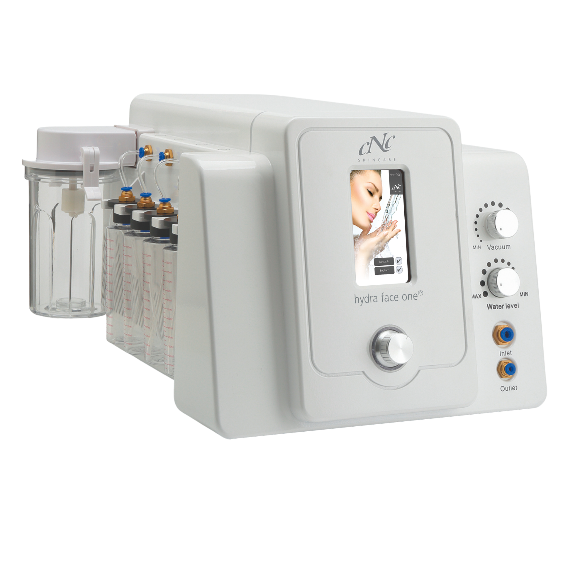 Hydra face one: CNC hydra face one® ist ein kosmetisches Pflegesystem zur Gesunderhaltung einer schönen Haut mit einem unverwechselbaren, jugendlichen Glow. Das Pflegesystem basiert auf der Vortex (dt.: Wirbel) Technologie. Wie bei einem Tornado, werden Unreinheiten und Schmutz aus den Poren gezogen und gleichzeitig die Haut mit antioxidativen, auf das Hautbild abgestimmten Wirkstoffen versorgt. Einzigartiger und sichtbarer Soforteffekt!